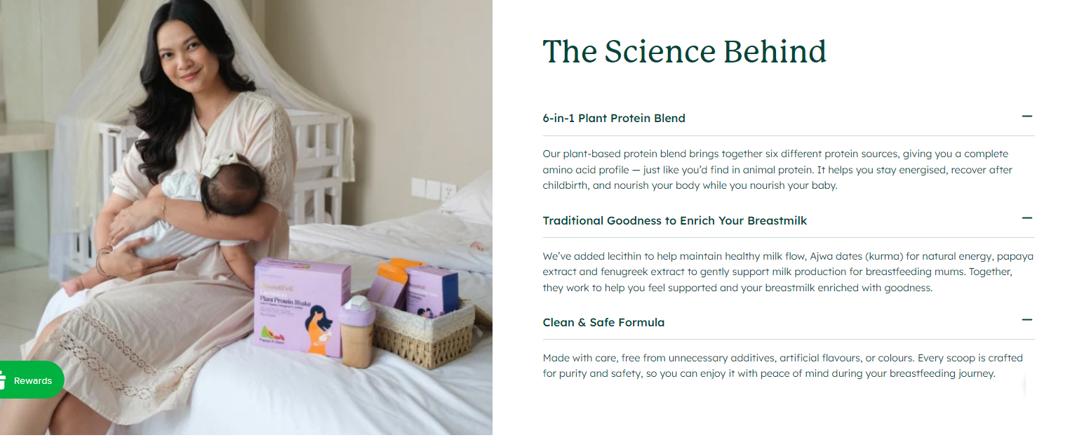 Soybean Powder [32.5%], Plant-Based Protein [Isolated Soy Protein, Prothy™ Hydrolysed Rice Protein, Oat Protein Concentrate, Pea Protein Isolate, Pumpkin Seed Protein, Brown Rice Protein] [30.6%], Isomaltulose [21.0g/100g], Inulin, Sweetener [Xylitol], Fenugreek Extract [1.5%], Soycithin® Soy Lecithin Powder [1.5%], Kurma Ajwa Extract [1.3%], Natural Flavouring Substances, Lynside® FORTE BUS [B-vitaminsFortifield Nutritional Yeast], EXBERRY® Shade Fiesta Pink [Beetroot Concentrate, Carrot Concentrate]. Papaya Fruit Extract [0.3%], Ferrous Fumarate