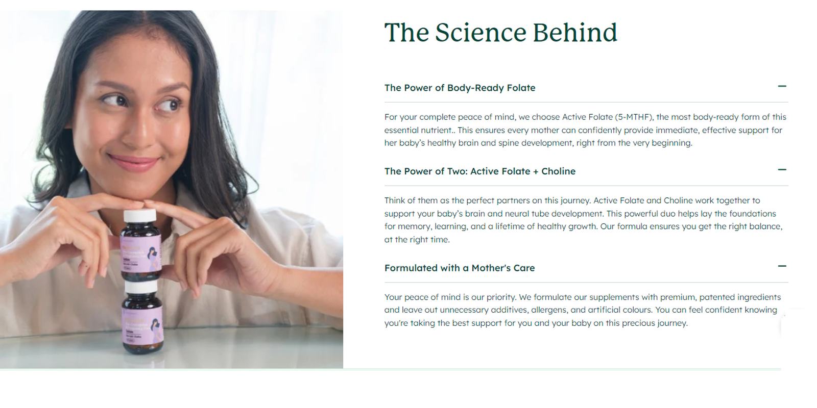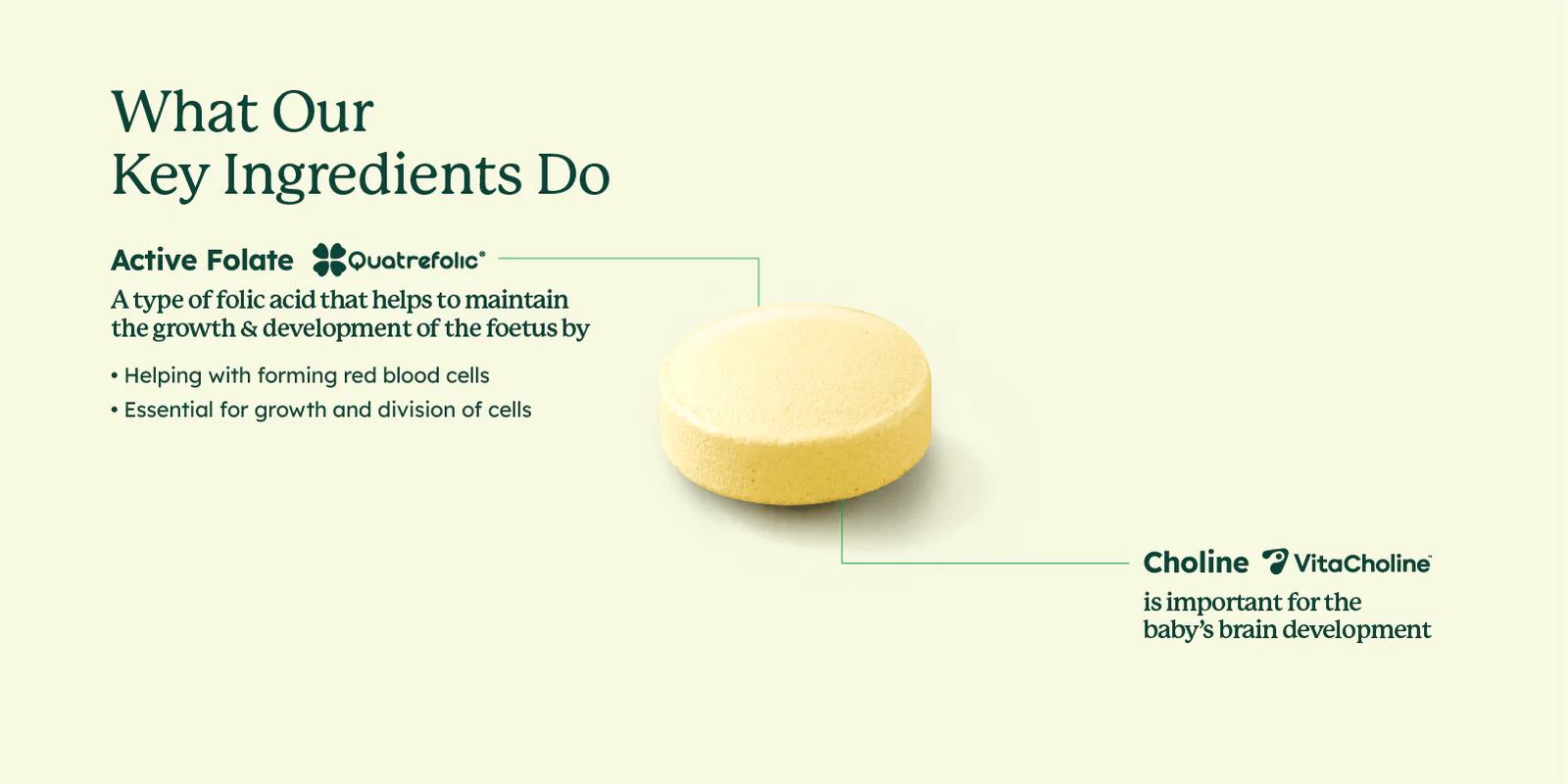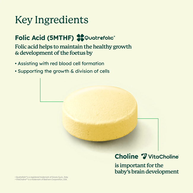 - Contains Active Folate (5-MTHF) & Choline to support the growth & development of the fetus