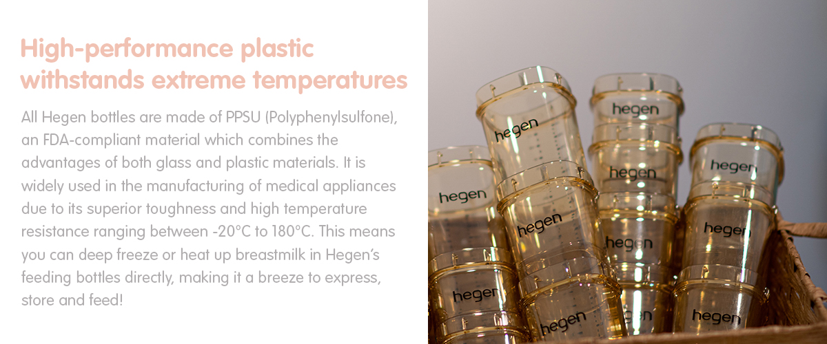A Basic Starter Kit perfect for gift giving or mothers who wish to try Hegen! With a feeding bottle each in the 150ml/5oz and 240ml/8oz sizes, mothers may choose to use the size most suitable for baby. The breast milk storage lids also allow the feeding bottles to be easily converted to air-tight and secured storage containers by simply swapping the interchangeable lids. One container, different lids – minimal hassle with maximum convenience! Everything happens within a single container, minimising wastage and making every drop count.