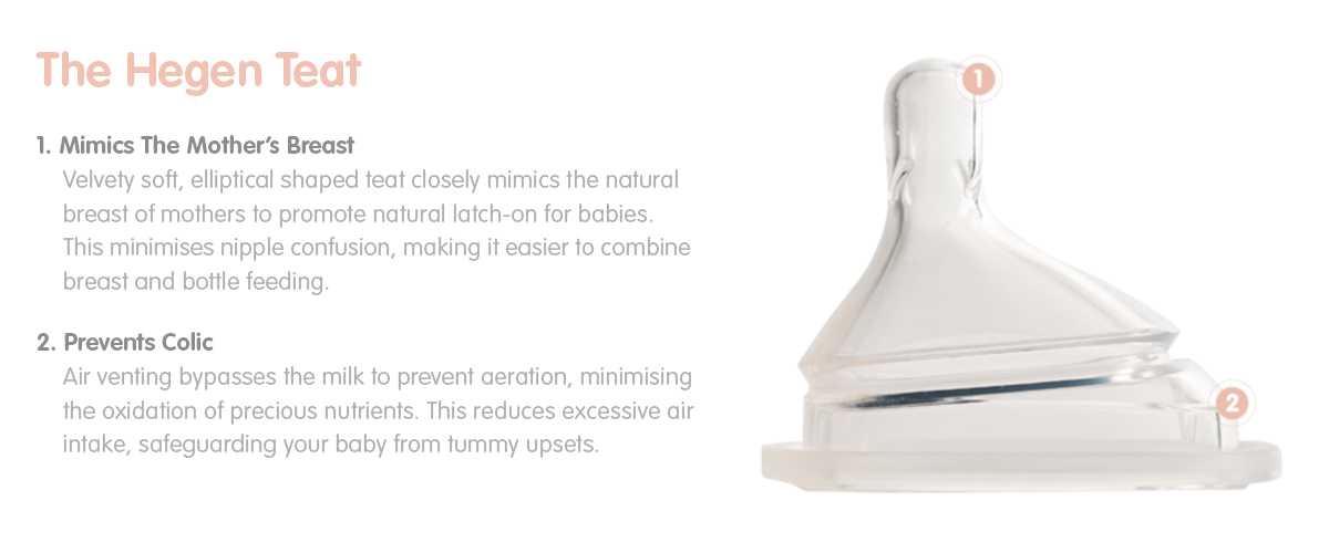 Hegen’s teats are designed to encourage seamless transition from breast to bottle feeding, minimising nipple confusion for your baby.