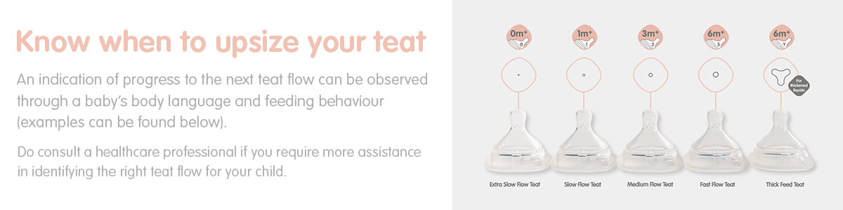 Our velvety soft, elliptical shaped teat closely mimics a mother’s lactating breast while the off-centre teat design promotes upright feeding – similar to a position in which babies are nursed – to reduce the risk of milk back-flow and resulting mid-ear complications and colic.
